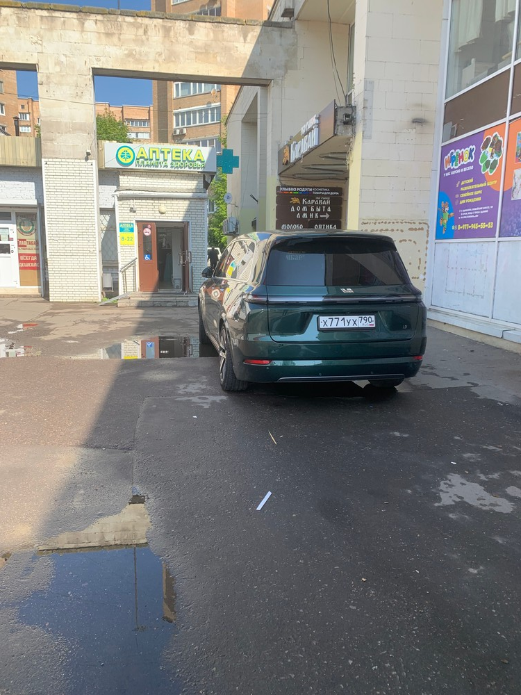 Автомобиль заехал на тротуар и проехав 100 метров от дороги через тротуар остановился прямо у магазина. Адрес: Московская область, город Одинцово, улица Можайское шоссе дом 121.