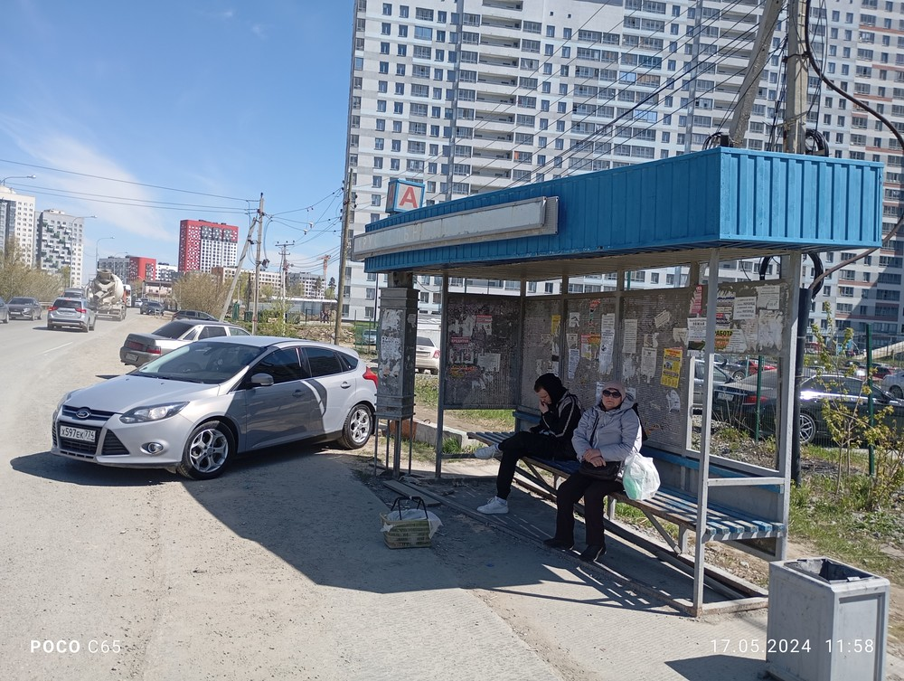 Екатеринбург. Остановка Хрустальногорская в сторону центра. 17.05.2024. Водитель поставил тонированный автомобиль на остановке общественного транспорта.