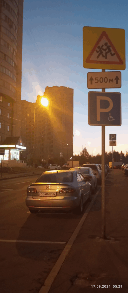 17.09.2024., 05 ч. 29 мин., г. Москва, Загортевская ул. д. 25 стр. 2, городская парковка. Водитель автомобиля Мазда, серого цвета, номерной знак О040ОУ32,припарковал свой автомобиль на парковочном месте, предназначенном для парковки инвалидов.