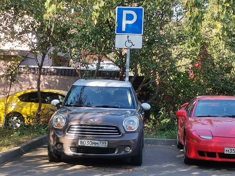 17.09.2024, Павловский посад, ул. Выставкина 1, автомобиль припаркован на инвалидном месте, без опознавательных знаков.