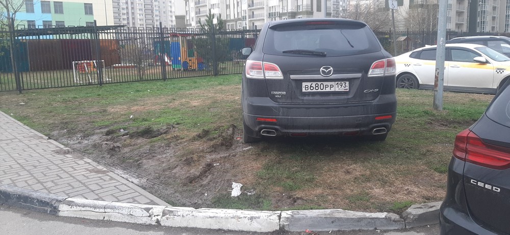 16.04.2024 г. Домодедово, ул. Курыжова 15 к.1. Машина часто паркуется на газоне у детского сада.
