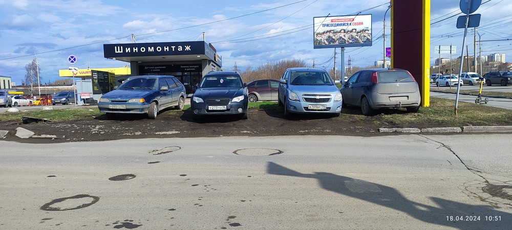 18.04.2024г. 10:51 г. Екатеринбург, пр. Космонавтов, 17д. Массовая парковка автомобилей на газоне.