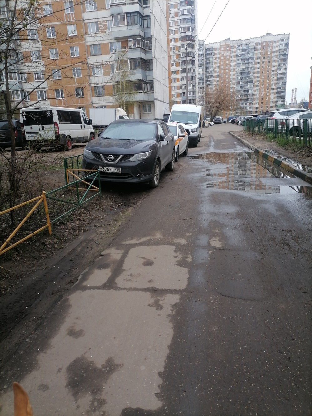 18.04.2024, Санкт-Петербург, Ленсовета 95, стоянка на тротуаре во дворе.