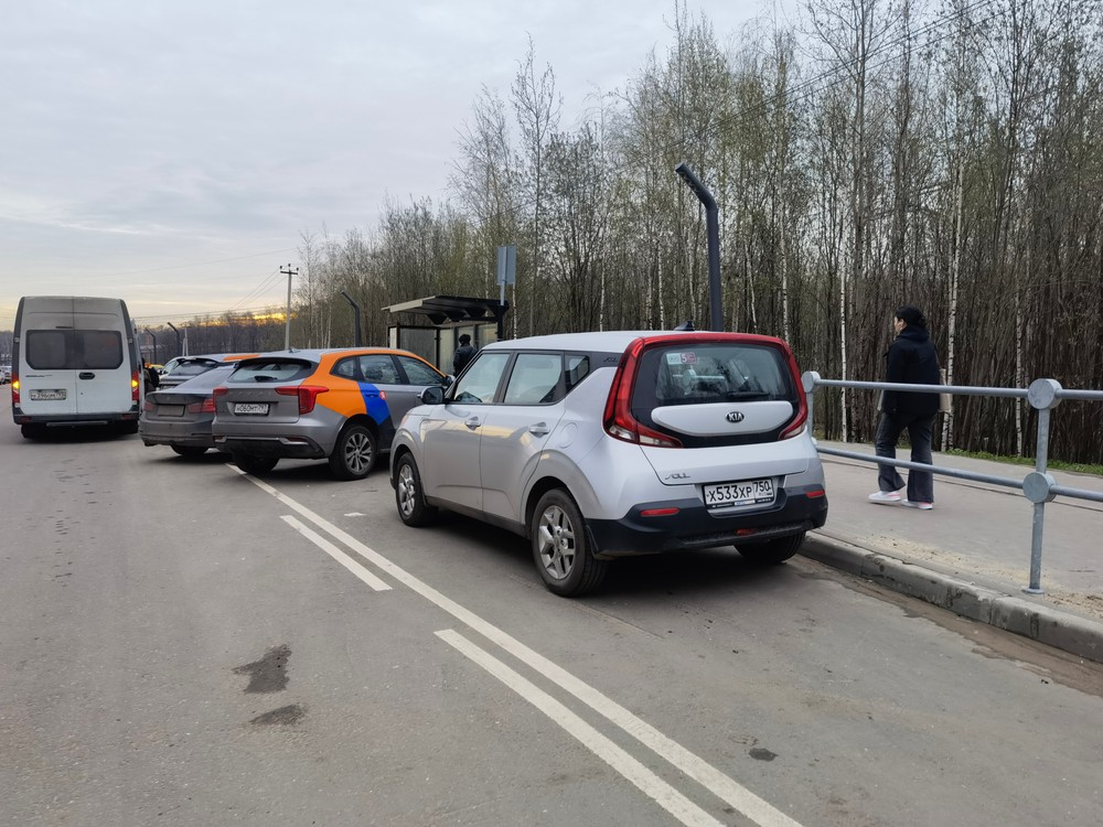 г. Видное, поселок Битца, Южный бульвар 6, 06:41, 18.04.24г, парковка на остановке общественного транспорта 1142.