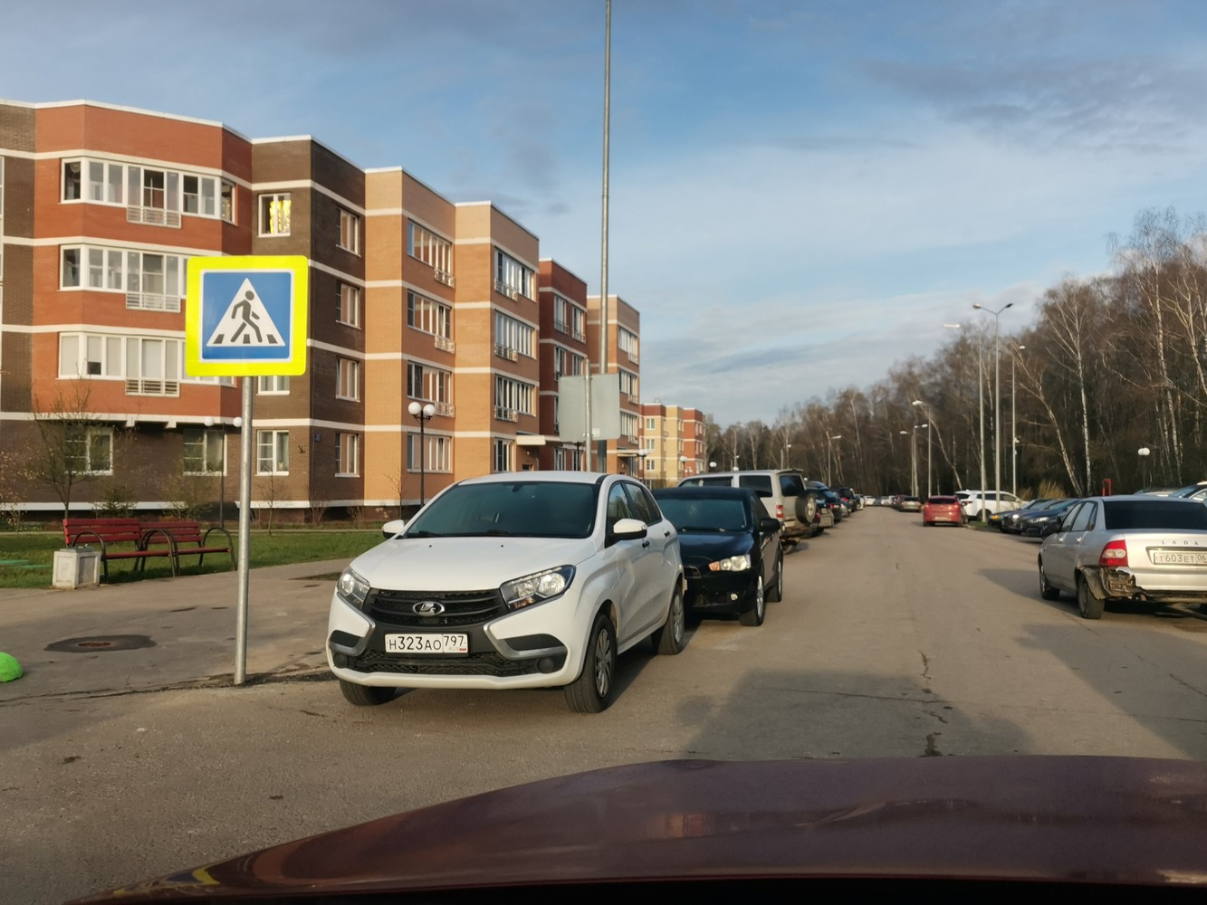 Д. Высоково, ЖК Малая Истра, д. 2. (55.910618, 36.919209) Парковка на пешеходном переходе.