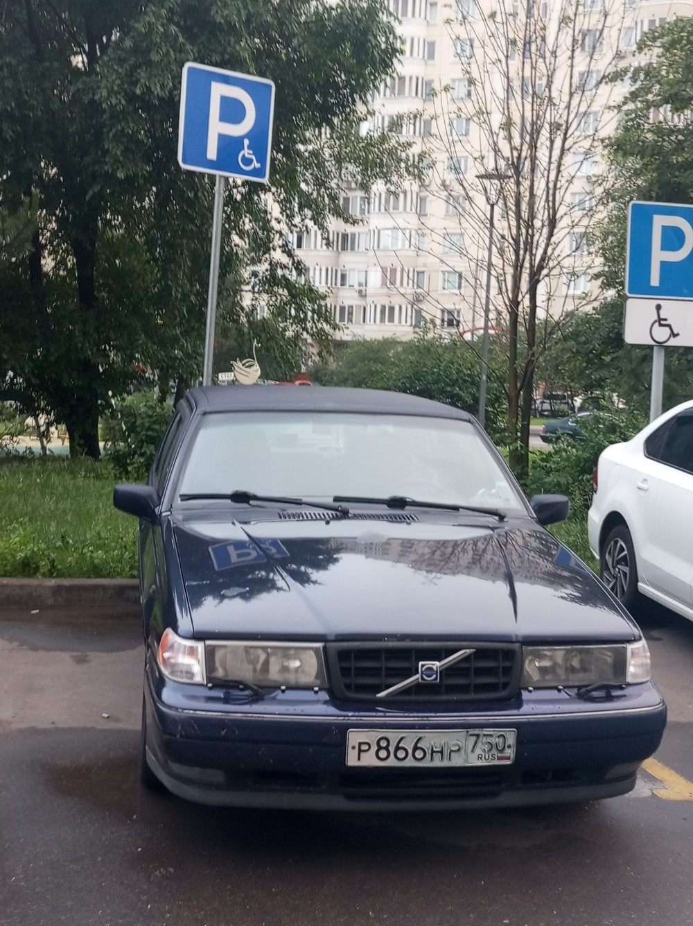 18.06.2024. в 5 ч.16 мин. по адресу:г. Москва, Загорьевская ул. д. 25 , мной было выявлено грубое нарушение ПДД водителем автомобиля вольво, синего цвета, гос. номер Р866НР750, а именно, парковка на парковочном месте инвалидов.