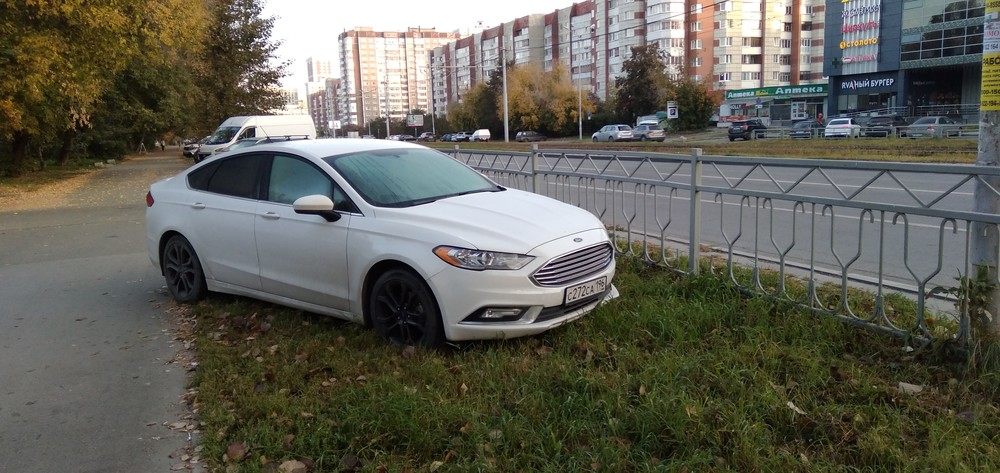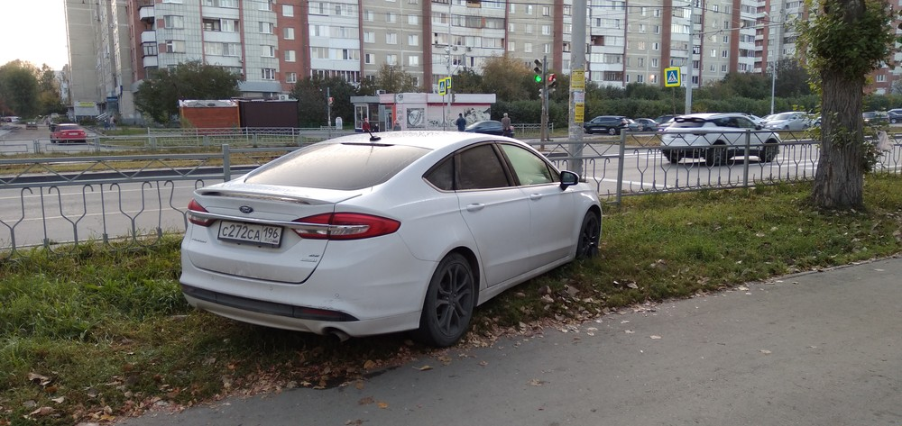18.09.2024 Екатеринбург ул.Советская 66/1 стоянка на газоне белый Форд Фокус грз С272СА196.