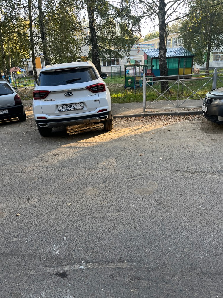 18 сентября 2024 год, 08 ч 10 мин. Московская область, город Солнечногорск, микрорайон Рекинцо. Парковка на пешеходной дорожке у детсада 32.