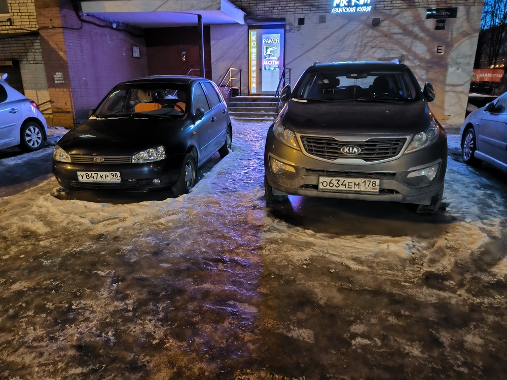 Санкт-Петербург, Ленсовета 93, парковка на газоне левой стороной автомобиля.