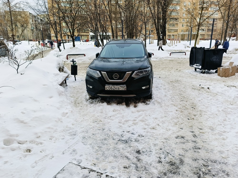 г. Балашиха, мкр. Кучино, ул. Виноградная д.1. Машина стоит на пешеходном проходе и перекрывает проход