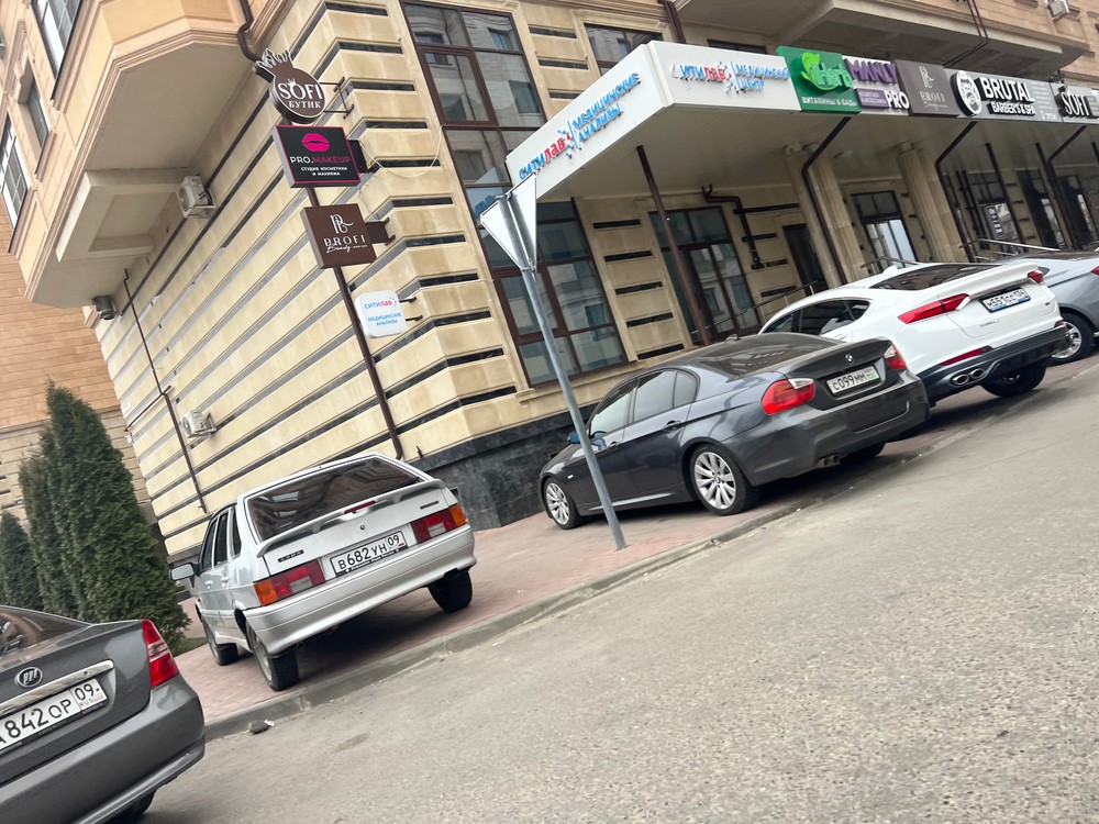 Карачаевок-Черкесская Республика, г. Черкесск, ул. Балахонова 32А. Нарушение ПДД.( парковка на тротуаре) гос. номер А 008 МН 09.