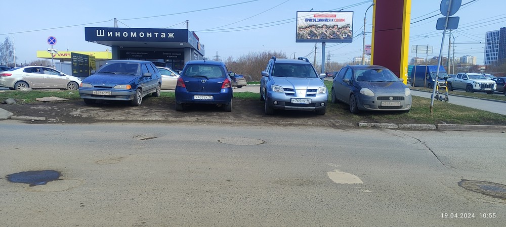 9.04.2024г. 10:55, г. Екатеринбург, пр. Космонавтов, 17д. Массовая парковка автомобилей на газоне.