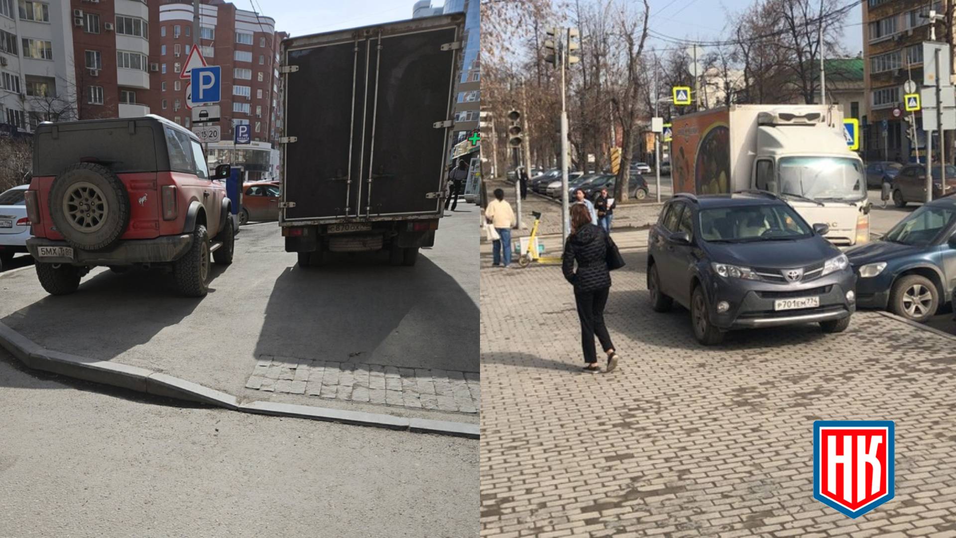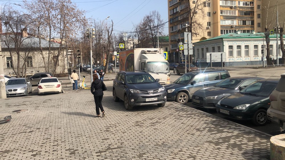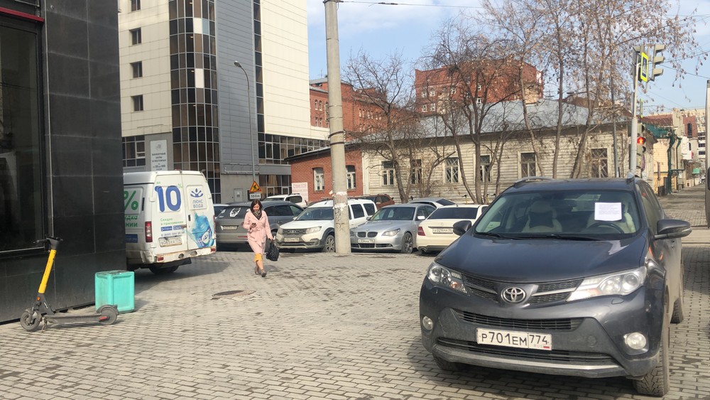 Екатеринбург. Паркуются на тротуаре. Розы Люксембург 22 около Магнума.