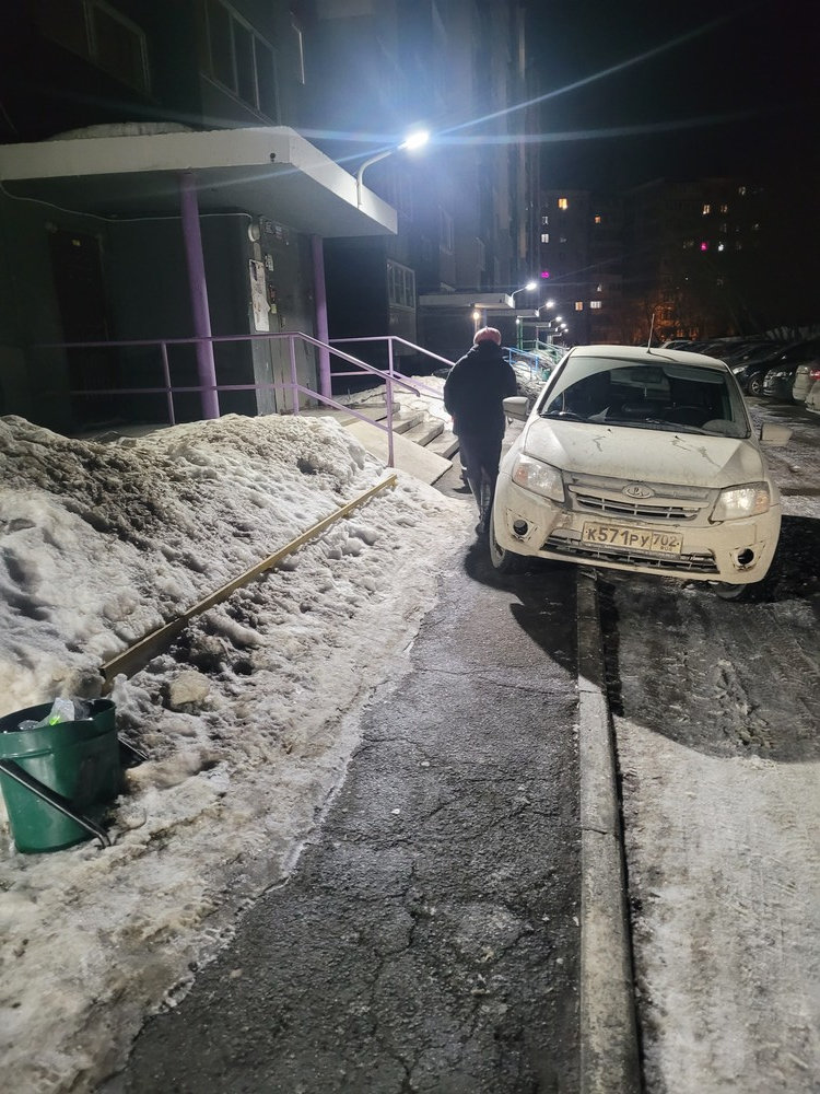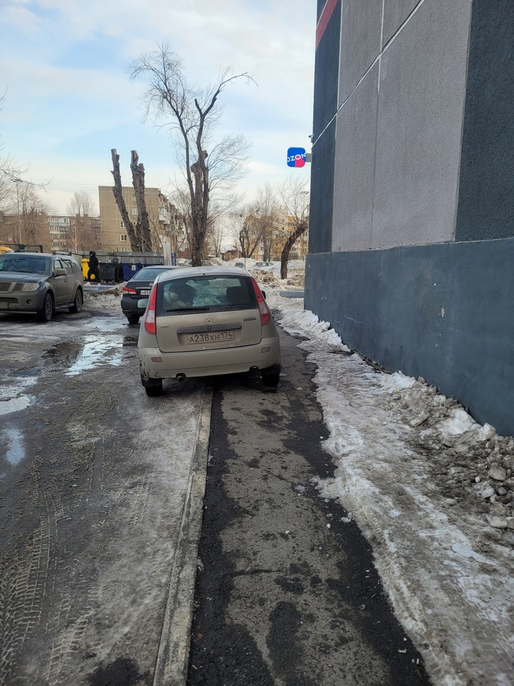 15.03.2024. 17.40. Парковка на тротуаре, г. Челябинск, ул. Гюго, д. 1, 1 подъезд.