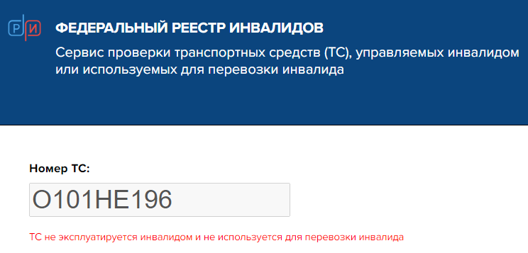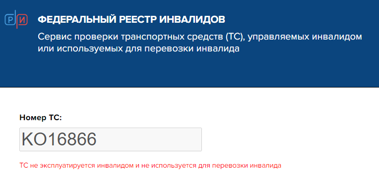 Данные авто проверены и в реестре транспортных средств, управляемых инвалидом или используемых для перевозки инвалида, не найдены.