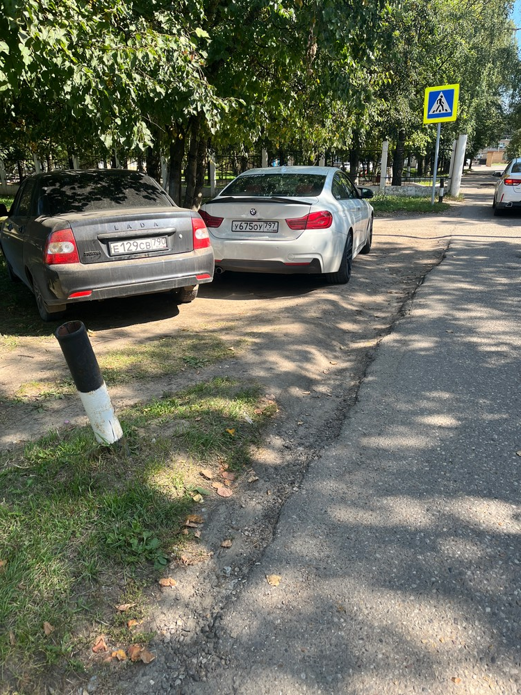 19 августа 2024 год 13 ч 42 мин Московская область город Солнечногорск микрорайон Рекинцо. Парковка на газоне при въезде на территорию Солнечногорской больницы.