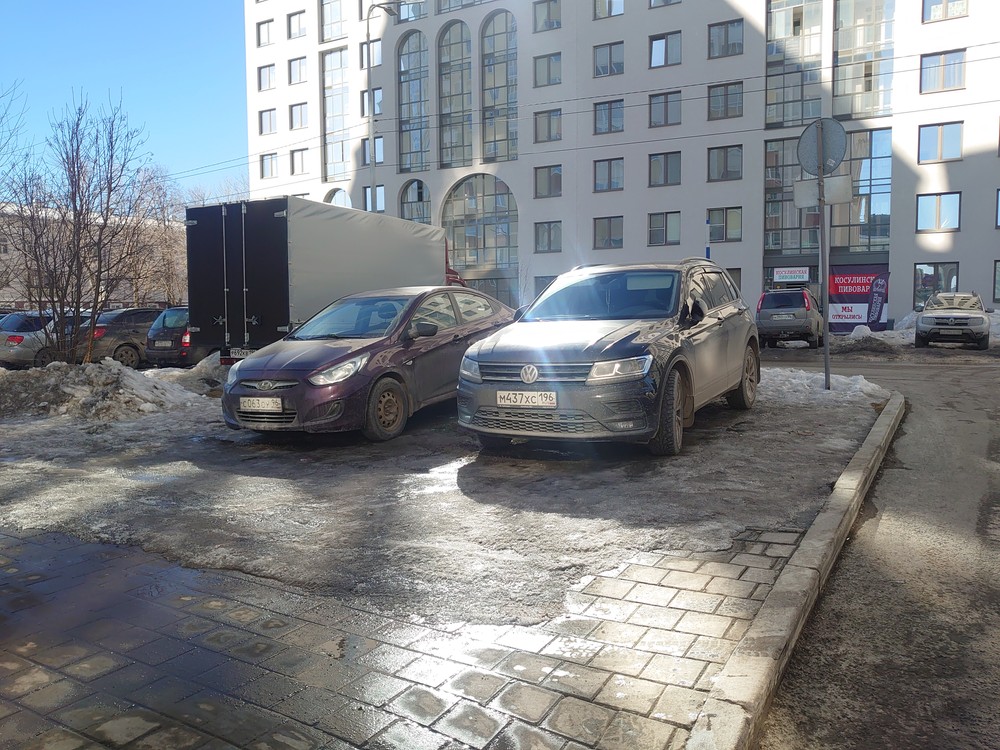 20.03.24, Екатеринбург, Громова 26-28. Парковка на тротуаре.