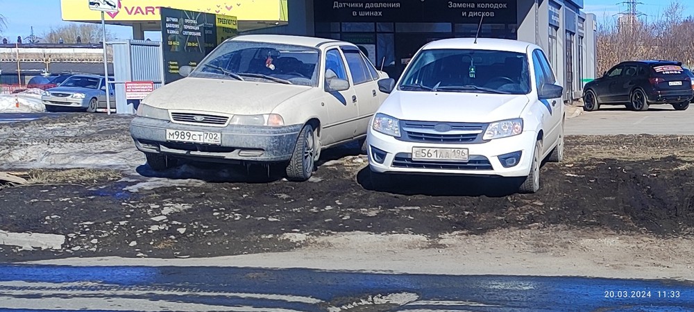 20.03.2024 г. 11:33 г. Екатеринбург, пр. Космонавтов, 17д. Массовая парковка автомобилей на газоне. Автомобили: Hyundai Solaris г.н. н283ет196, Lada Granta г. н. е561аа196, Daewoo Nexia г.н. м989ст702.