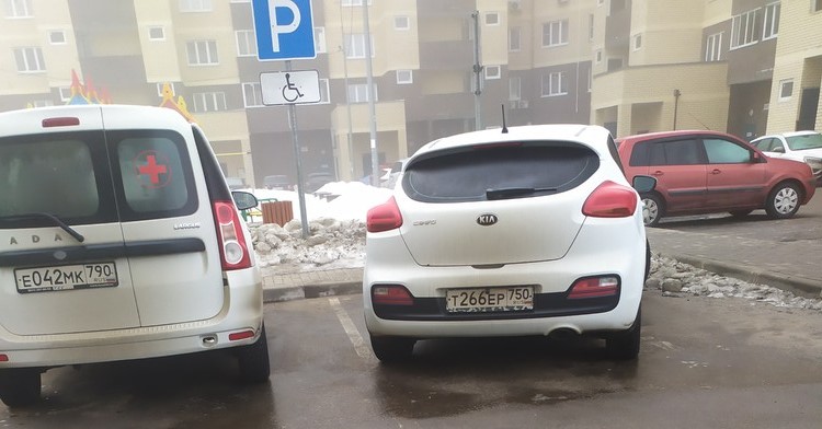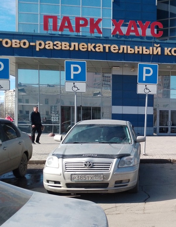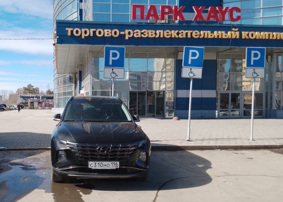20.03.2024, время 13.04. Екатеринбург, Сулимова 50, ТЦ парк Хаус, стоянка на местах для инвалидов.