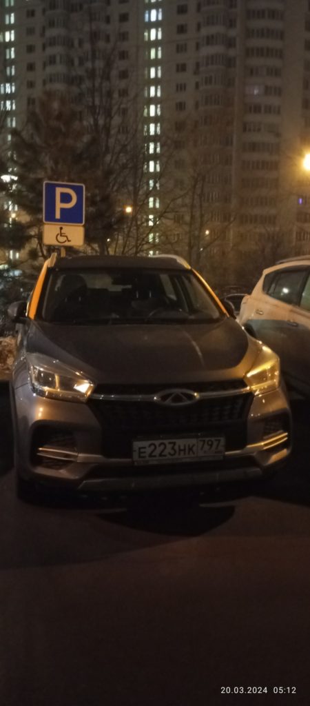 20.03.2024, 6:31, г. Москва, ул. Крупской д.14, парковка на дворовой территории за домом. Место предназначенное для остановки или стоянки транспортных средств инвалидов, занимает автомобиль не имеющий знака инвалид, в реестре автомобилей инвалидов, информация отсутствует.