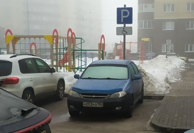 г. Ногинск, улица Дмитрия Михайлова д. 6. Стоянка под знаком «Стоянка для инвалидов»