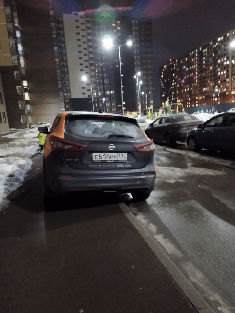 19.03.2024. Московская область, г. Балашиха, мкр. Саввино, ул. Безымянная 8. Автомобиль каршеринга припарковался на пешеходном тротуаре, пришлось с ребенком обходить по проезжей части.