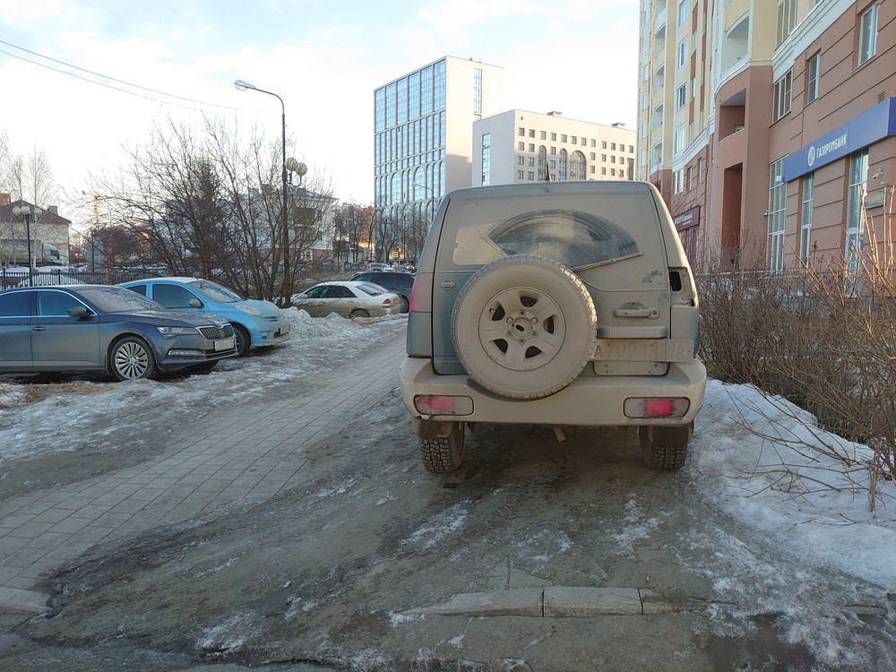 19.03.2024, город Пермь, улица Мира, дом 104, парковка на тротуаре.