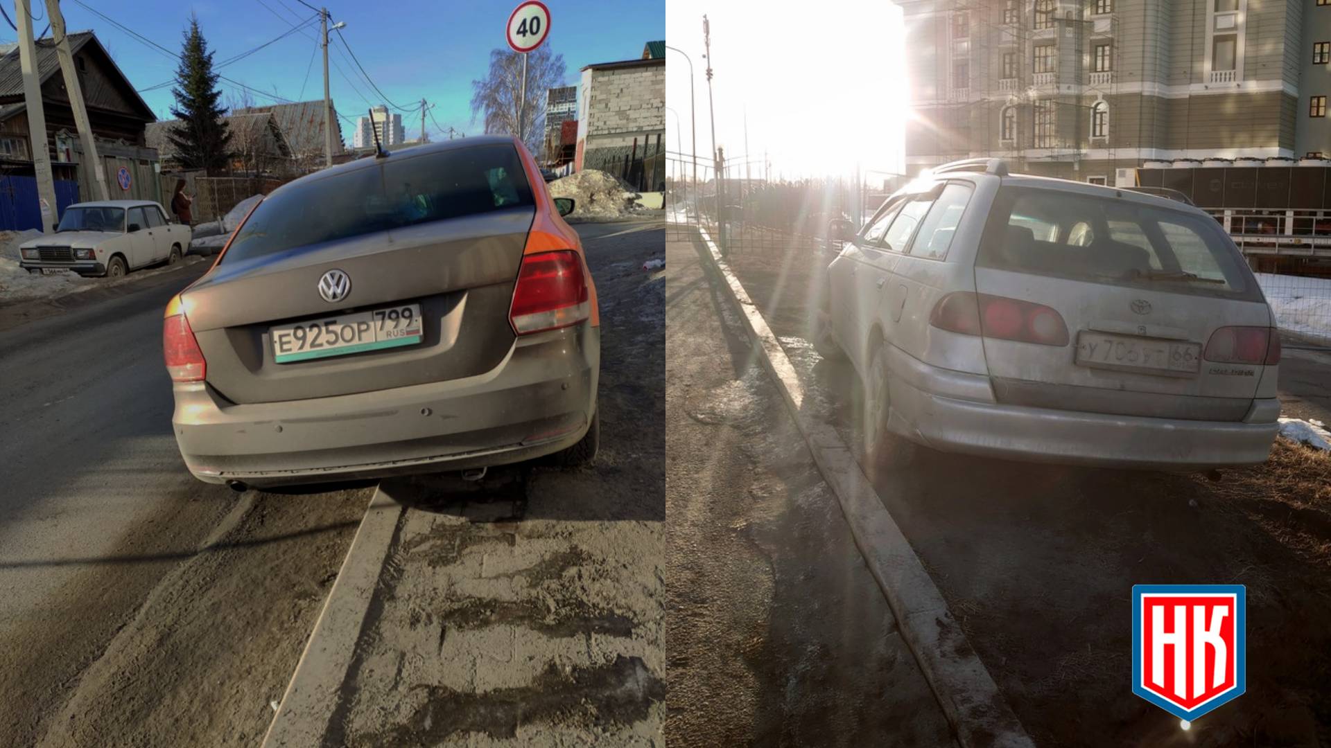 20.03.2024, 7-59, г. Верхняя Пышма, улица Александра Козицына дом 8, парковка на газоне и тротуаре.