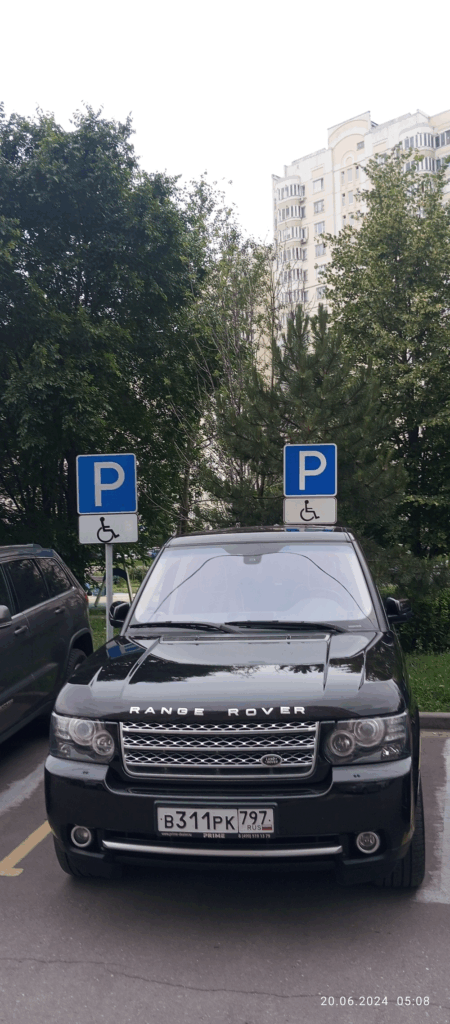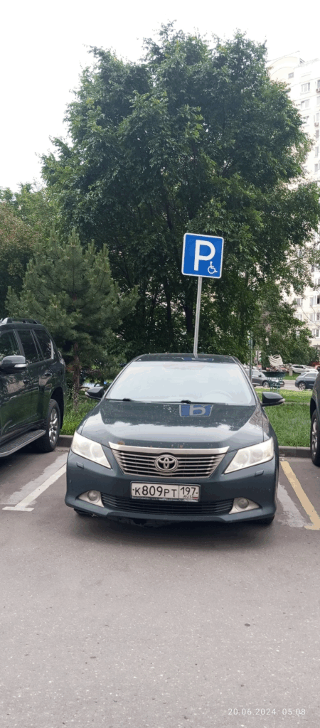 20.06.2024., в 05:08 по адресу г. Москва, Загорьевская ул. д 25, было выявлено нарушение ПДД, а именно, водители автомашин Ранж Ровер черного цвета, Тойота Камри черного цвета, JEEP черного цвета припарковали свои автомобили на парковочных местах инвалидов.