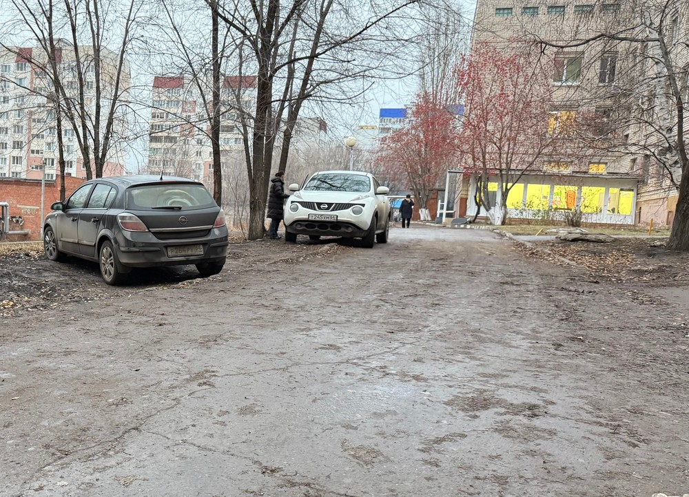 20 ноября 2024 года, город Саратов, Ленинский район, ул. Мамонтовой/2-я Электронная, возле детской поликлиники 19. Невозможно пройти — все газоны испорчены, автомобили паркуются на зеленой зоне.
