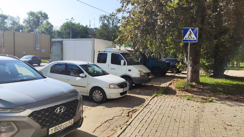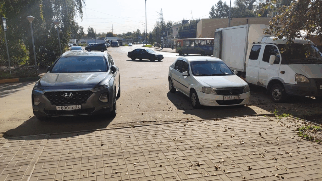 21.08.24 г. Нижний Новгород, ул. Мончегорская 7А. Стоянка и парковка на пешеходном переходе. Движение задним ходом. Создание аварийной ситуации. Препятствуют передвижению пешеходов.