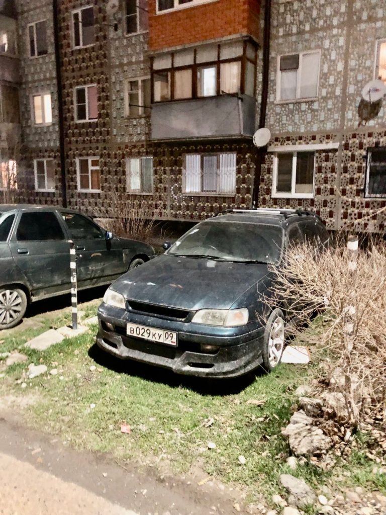 21.02.2024 год, Карачаево-Черкесская Республика, г. Черкесск, ул. Партизанская 91-А, грубое нарушение ПДД (систематическая парковка на газоне)