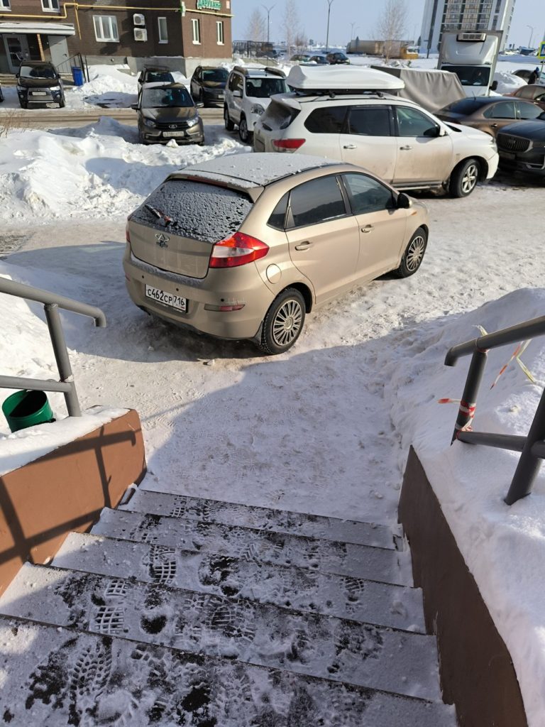 22.02.2024 г. Набережные челны, ул. Виктора Полякова, 15/1. Нарушение правил парковки автомобиля. Авто стоит с 21-го февраля, прямо у парадного входа, почти вплотную к ступеням подъезда.