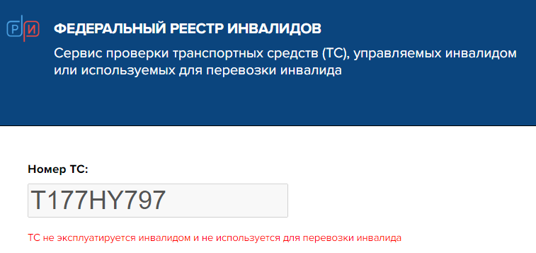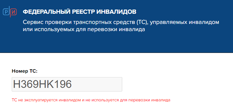 Данные авто проверены и в реестре транспортных средств, управляемых инвалидом или используемых для перевозки инвалида, не найдены.