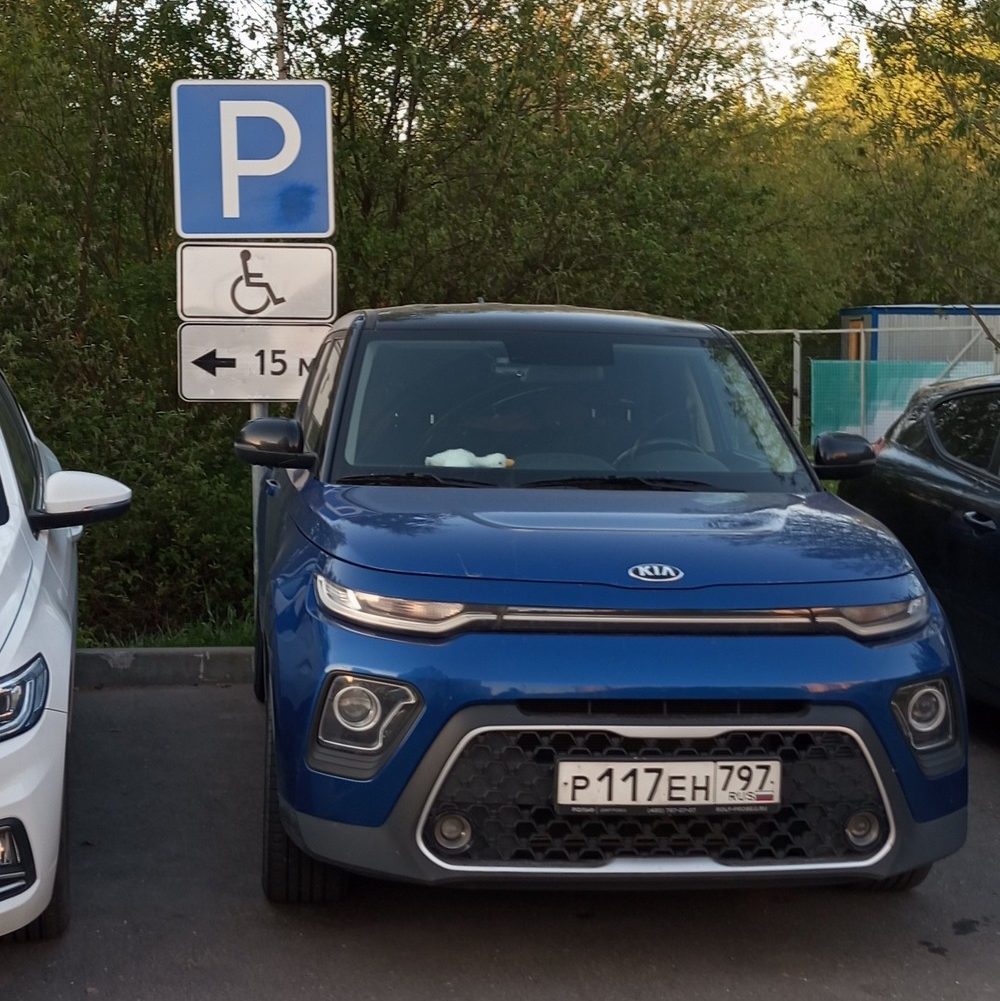 22.05.2024. в 05 ч. 04 мин., по адресу Загорьевская ул. д. 25. Парковка на месте предназназначенном для парковки инвалидов. Автомобиль нарушителя — Т177НУ797, БМВ, белого цвета и Р117ЕН797, КИА Солл, синего цвета.