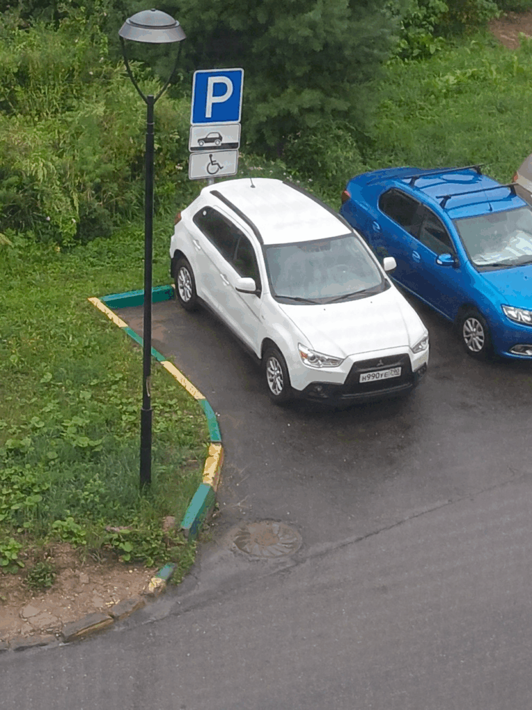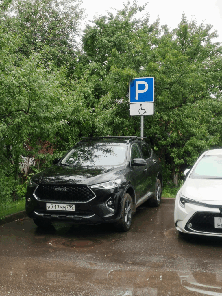 22.07.2024. Московская область, Красногорский район, рабочий посёлок Нахабино, улица Покровская дом 8. Парковка на инвалидном месте.