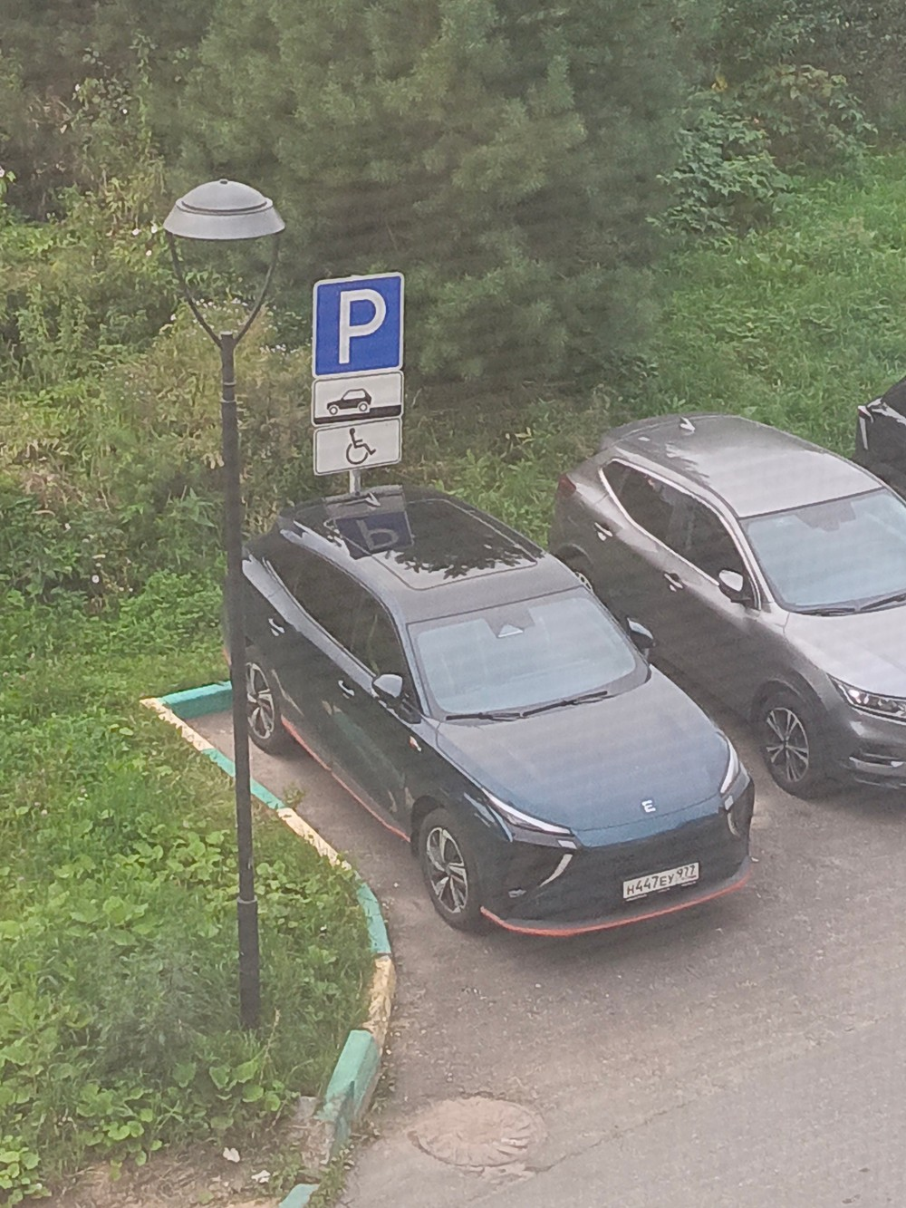 22.08.2024. Московская область, Красногорский район, рабочий посёлок Нахабино, улица Покровская дом 8. Парковка на инвалидном месте.