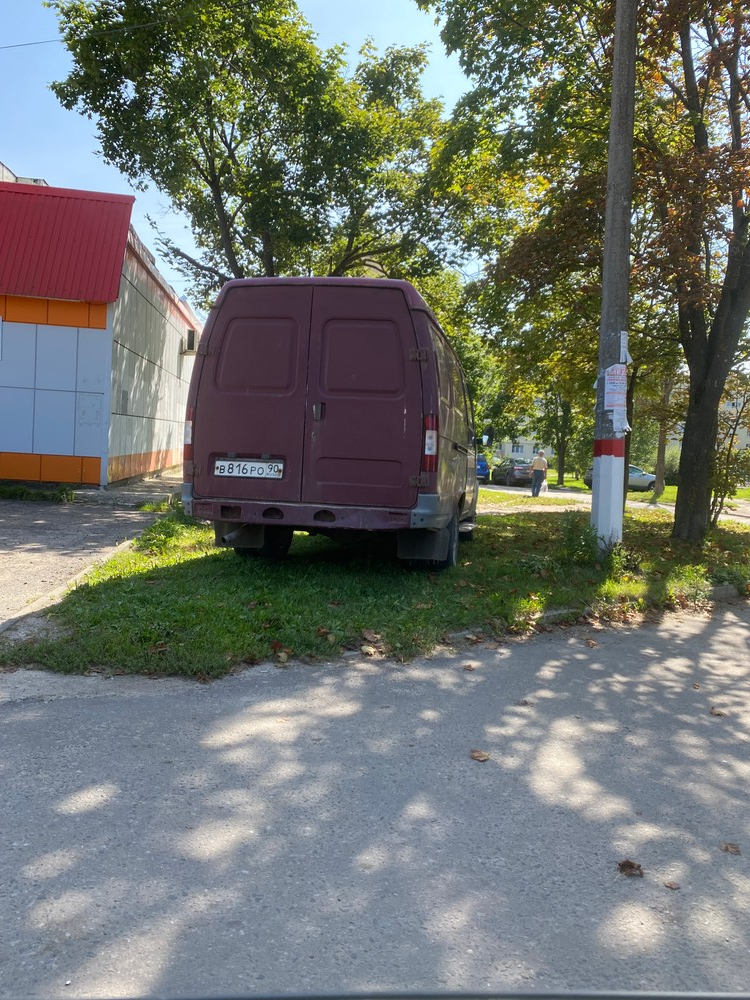 22.08.24г. Павловский Посад, Фрунзе 43, у магазина Верный, автомобиль припарковал автомобиль на газоне, когда вся парковка у магазина свободная.
