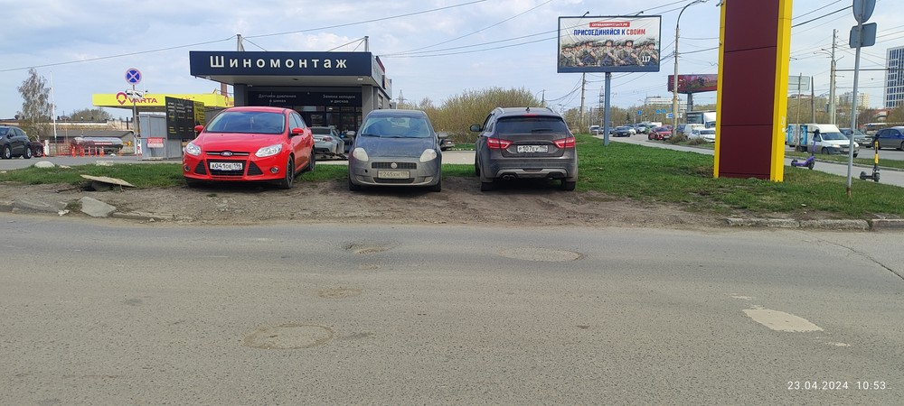 23.04.2024г. 10:53. г .Екатеринбург, пр. Космонавтов, 17д. Массовая парковка автомобилей на газоне.
