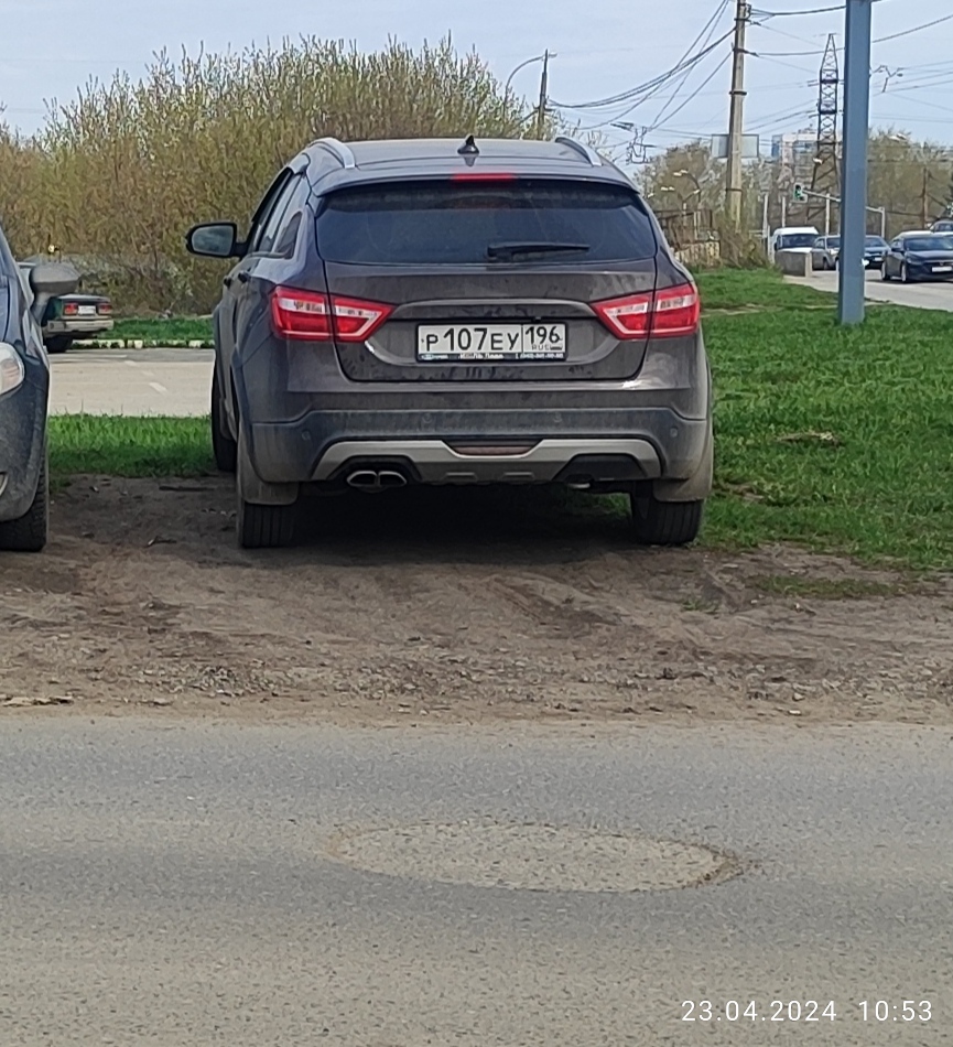 23.04.2024. г. Екатеринбург, ул. Тенистая 6/2. Парковка на газоне.