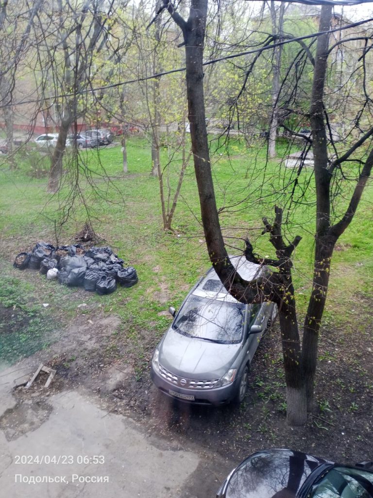 Незаконная парковка на газоне возле жилого дома по адресу: Московская обл., г. Подольск, ул. Мира, д. 3а. Владелец транспортного средства Nissan с номерными знаками 977 р 501 вн периодически паркует свою машину на газоне у дома. Необходимо принятие мер.