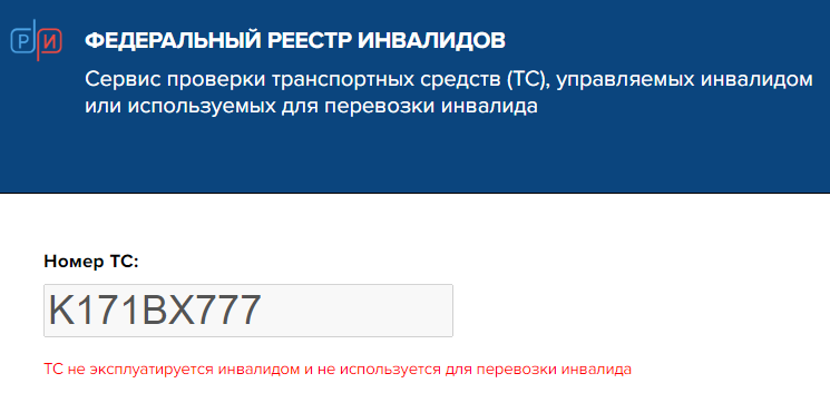 Данное авто проверено и в реестре транспортных средств, управляемых инвалидом или используемых для перевозки инвалида, не найдено.