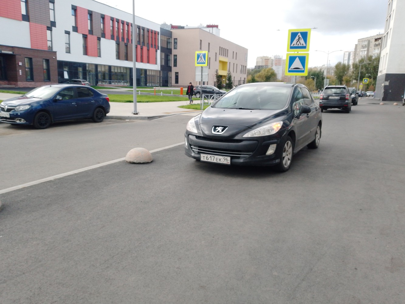 23 сентября. г. Екатеринбург, ул. Рощинская 21. Припарковался на тротуаре. Припарковался под знаком.