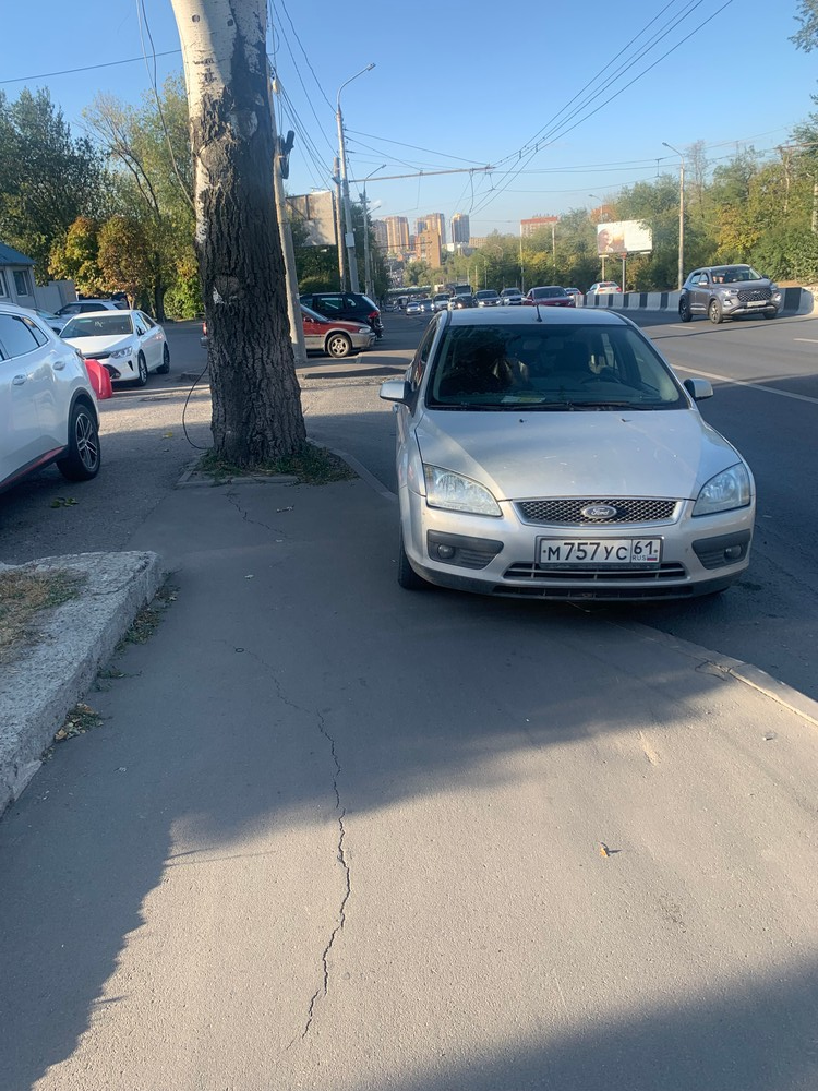 Автомобиль припарковался на переходе между тротуарами, частично на проезде и перекрывает проход для пешеходов Ростов-на-Дону, Михаила Нагибина 7а, 23.09.24, в 16:30.