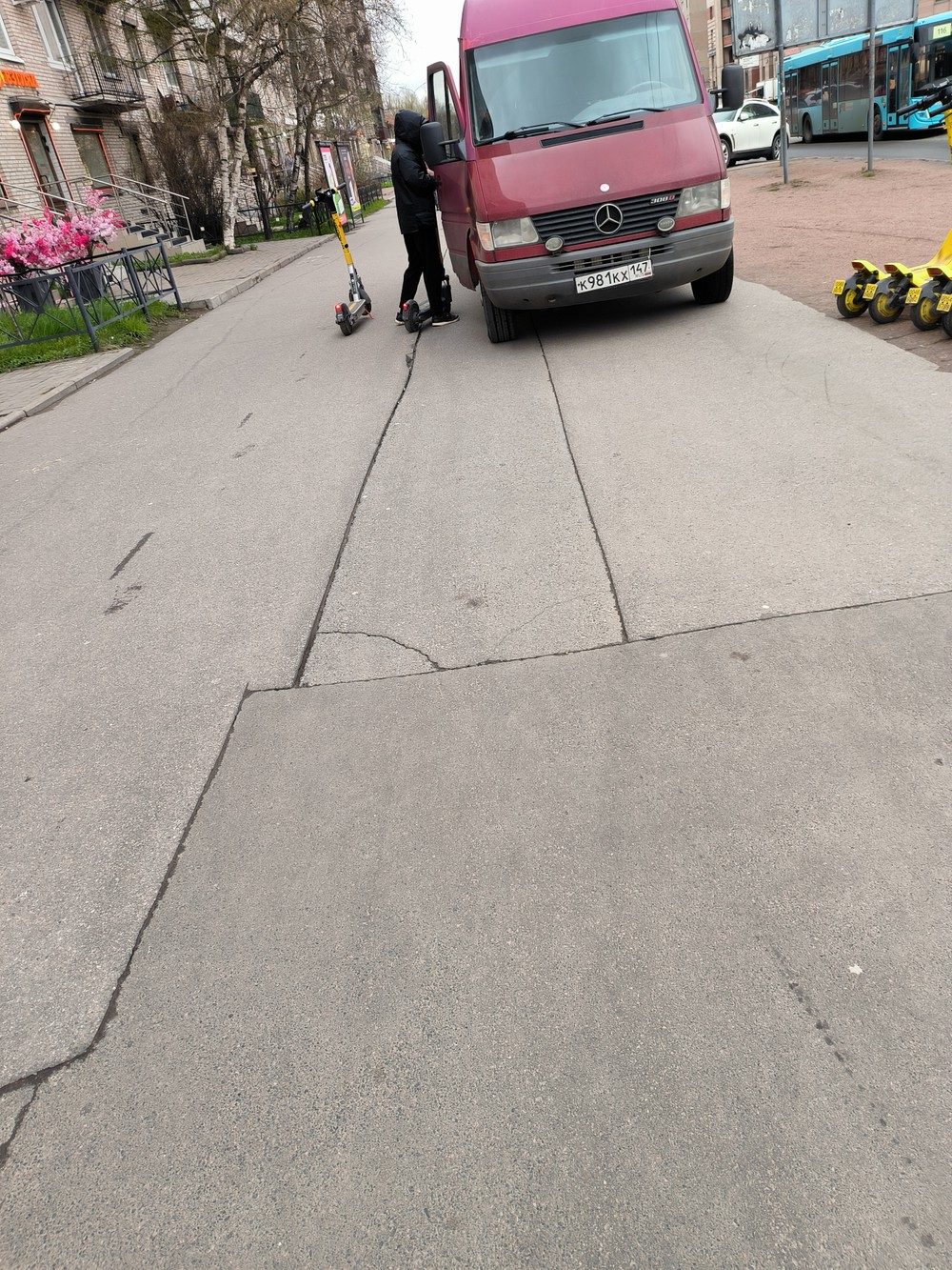 24.04.2024. Санкт-Петербург, улица Ленсовета 87 к1, проезд по тротуару.