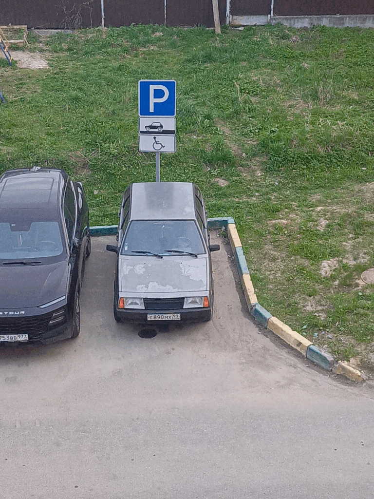 24.04 2024 года. Московская область, Красногорский район, рабочий посёлок Нахабино, улица Покровская дом 8. Стоянка на инвалидном месте.