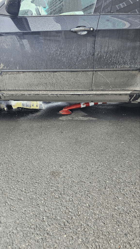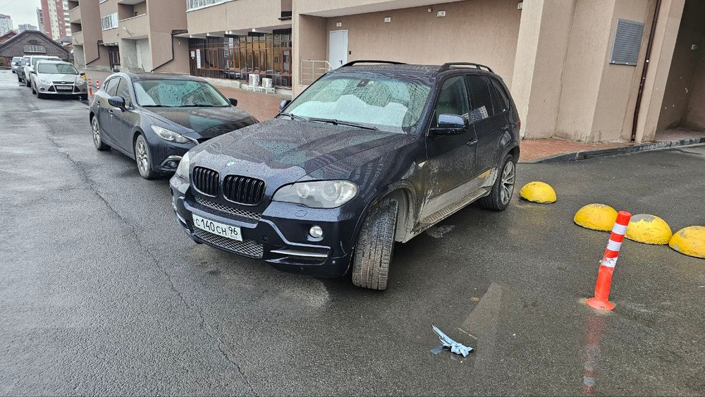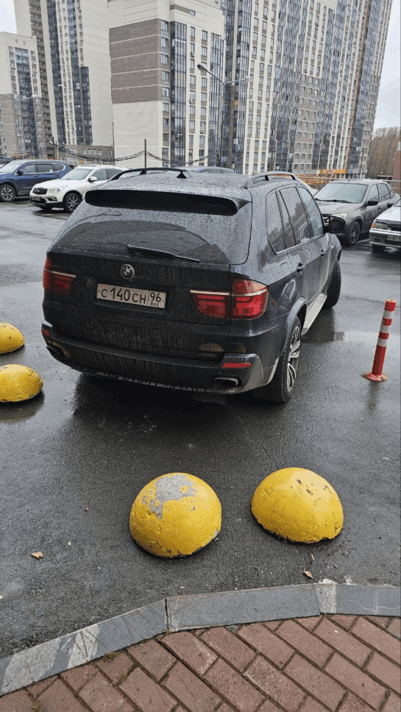 23.10.24г, Екатеринбург, Громова 26. Перегораживает пожарного выезда и замятие парковочного столбика.