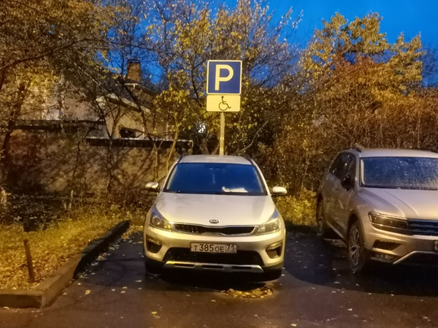 Московская обл., г. о. Домодедово, д. Павловское, ул. Колхозная, д. 10. Дата:24 октября 2024г., примерно 18. 00. Стоянка под знаком: Место для инвалидов. Номер авто: Т385ОЕ71.