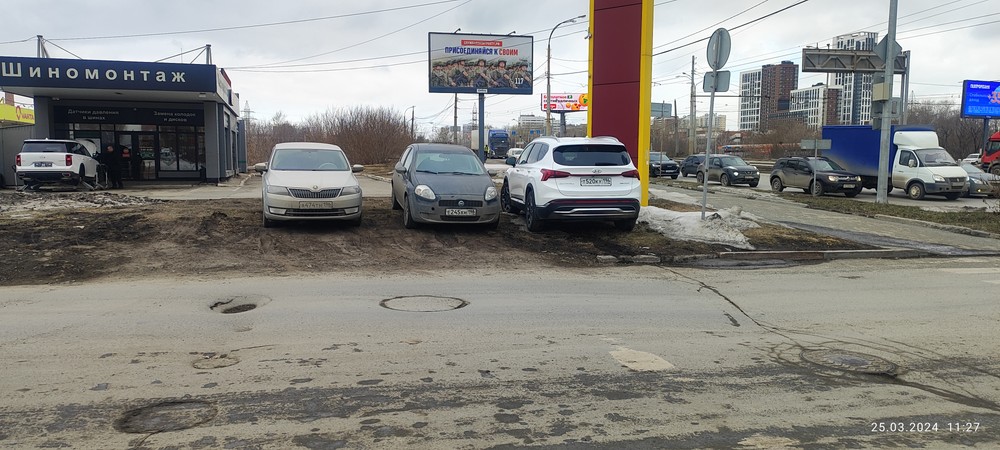 25.03.2024г. 11:27 г. Екатеринбург? пр. Космонавтов, 17д. Массовая парковка автомобилей на газоне.