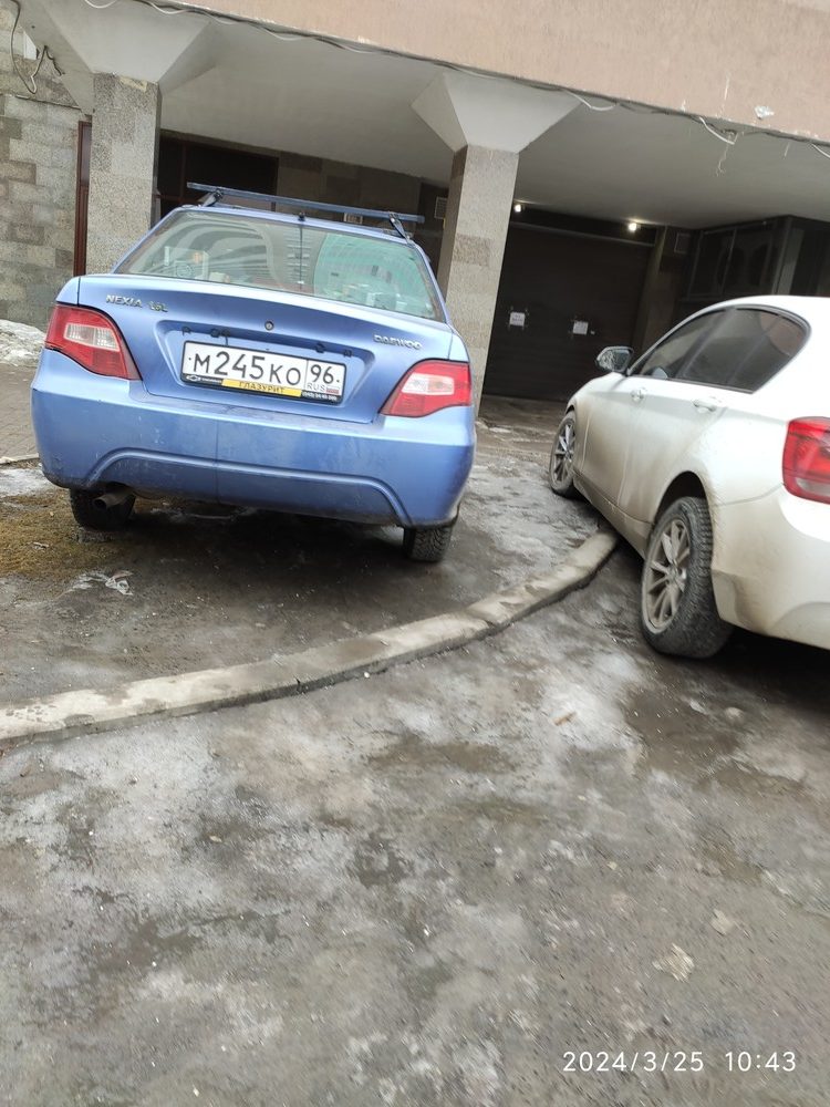 25.03.2024 7:20, г. Верхняя Пышма, улица Александра Козицына, дом 8, парковка на газоне Джилли, парковка на тротуаре БМВ